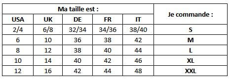 Taille : S, Tour de poitrine: 88 cm, Tour de taille: 80 cm, Tour de hanches: 108 cm, Taille devant: 97 cm