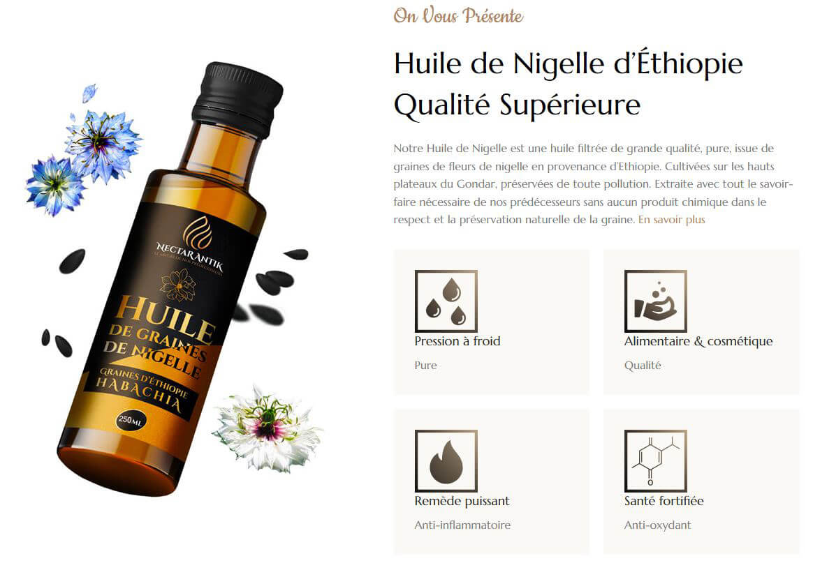 Notre Huile de Nigelle est une huile filtrée de grande qualité, pure, issue de graines de fleurs de nigelle en provenance d’Ethiopie.