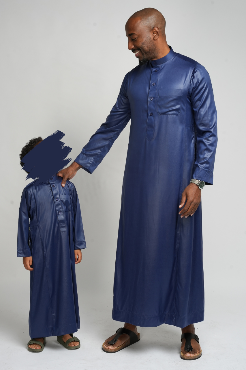 Le qamis bleu nuit, élégant et apaisant, est parfait pour les soirées ou les événements religieux.