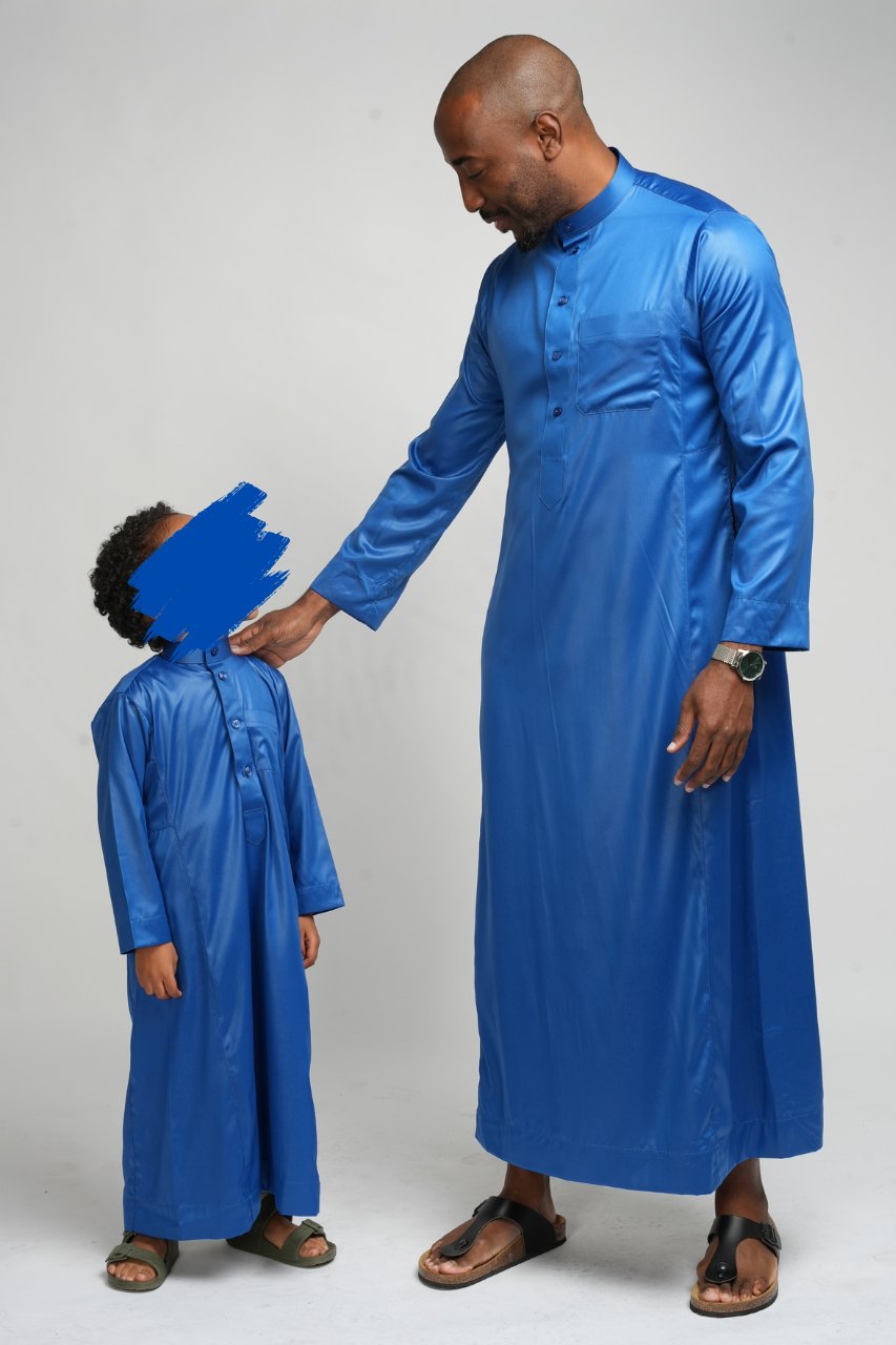 Le qamis bleu roi, éclatant et vibrant, est un excellent choix pour les célébrations et les jours de fête.