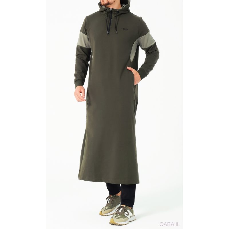 Qamis Kaki Long Bi-Matière à Capuche Qaba'il : UNIK