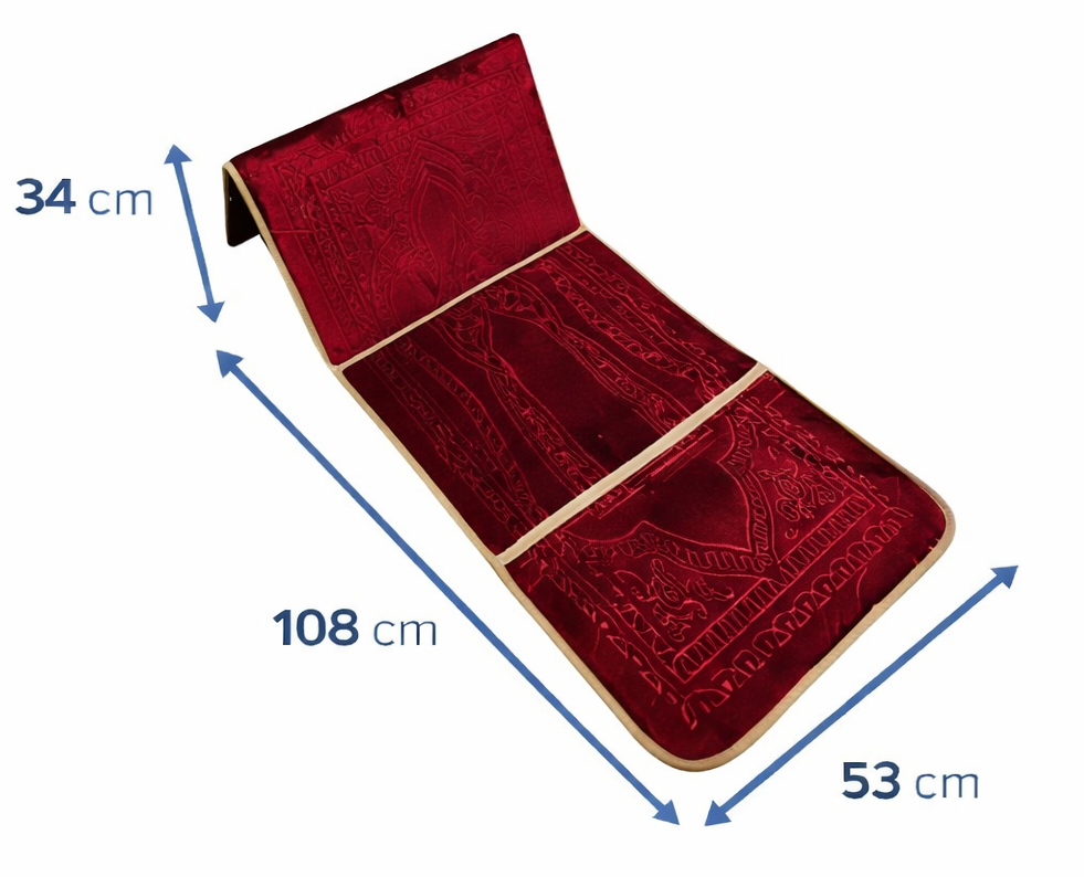 Tapis déplié : 108 × 53 cm, pour une surface confortable pendant la prière.