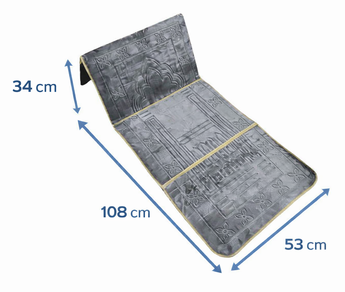 Un tapis de prière avec dossier, comme ce modèle uni gris, offre un confort inégalé.